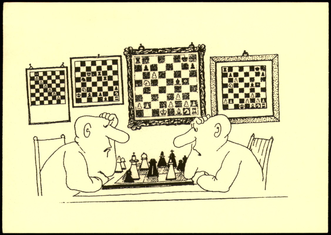 - Schach Chess - Spiel, Künstlerkarte Männer beim Schachspiel