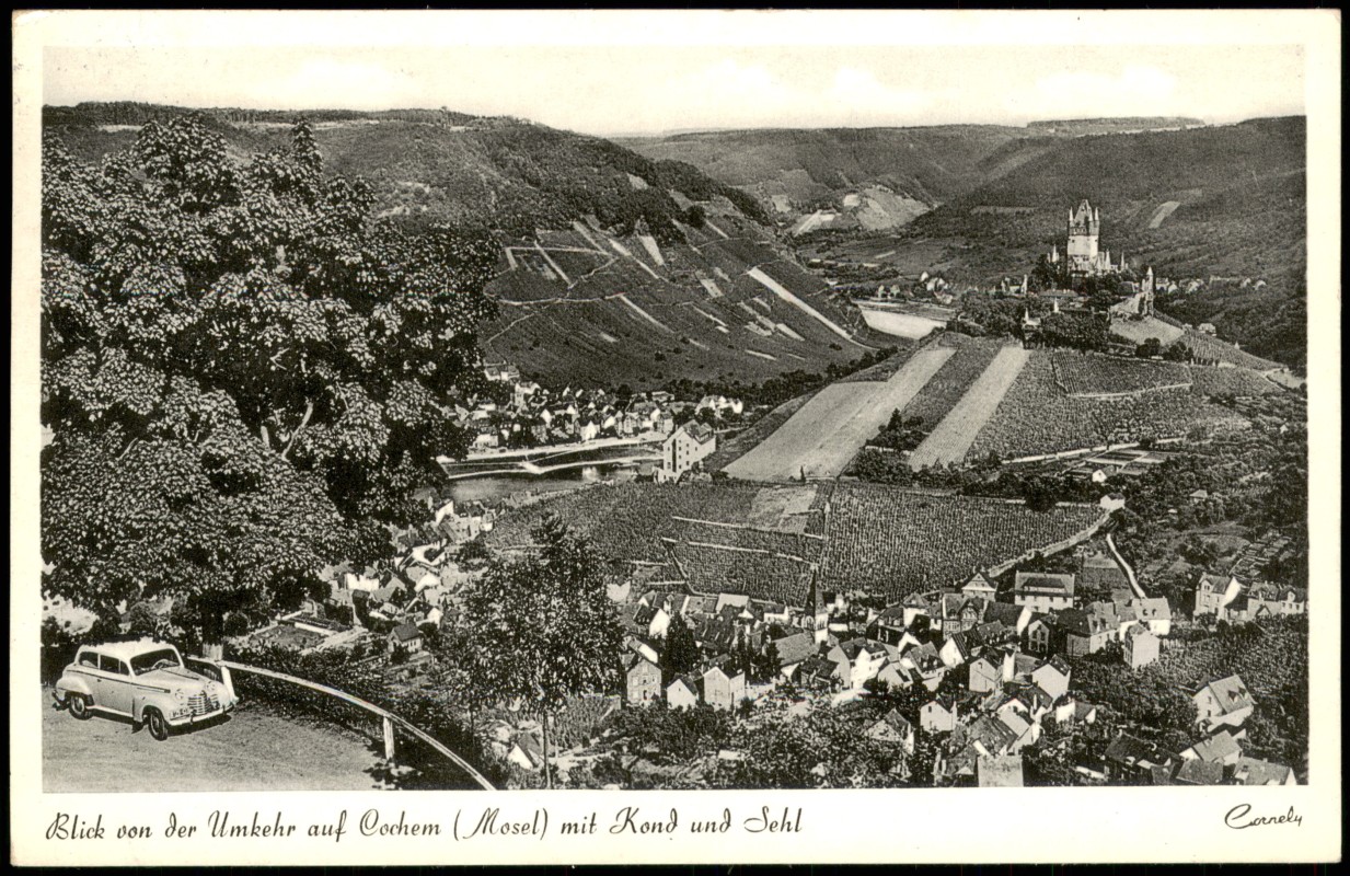 Ansichtskarte: Auto, Blick von der Umkehr mit Kond und Sehl - Cochem