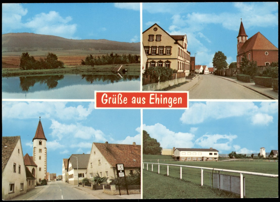 Ansichtskarte: Gemischtwarengeschäft, Straßen, Umland 4 Bild - Ehingen (Donau)