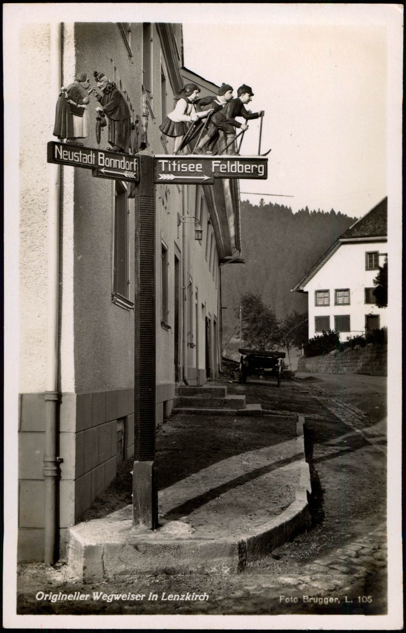 Foto Karte: Origineller Wegweiser (nach Bonndorf u. Titisee) - Lenzkirch