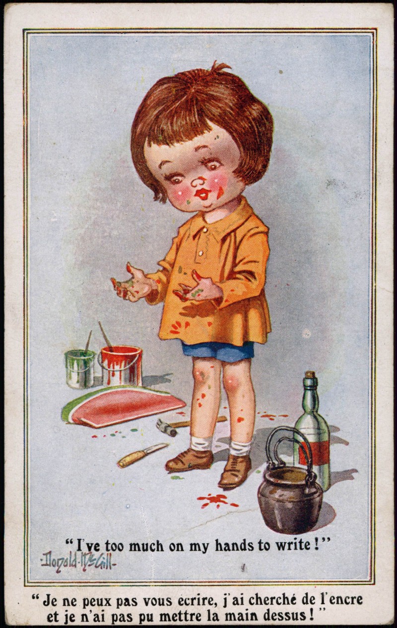 Ansichtskarte: Scherzkarte Kinder Künstlerkarten "I've too much on my hands to write !"