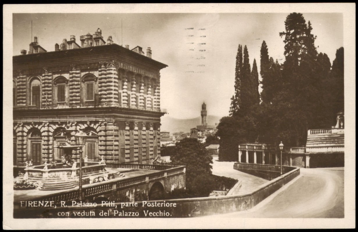 Foto Karte: R. Palazzo Pitti, parte Posteriore con veduta del Palazzo Vecchio - Florenz