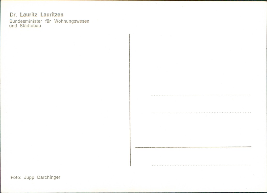 - Autogrammkarte Politik Dr. Lauritz Lauritzen Bundesminister für Wohnungswesen und Städtebau