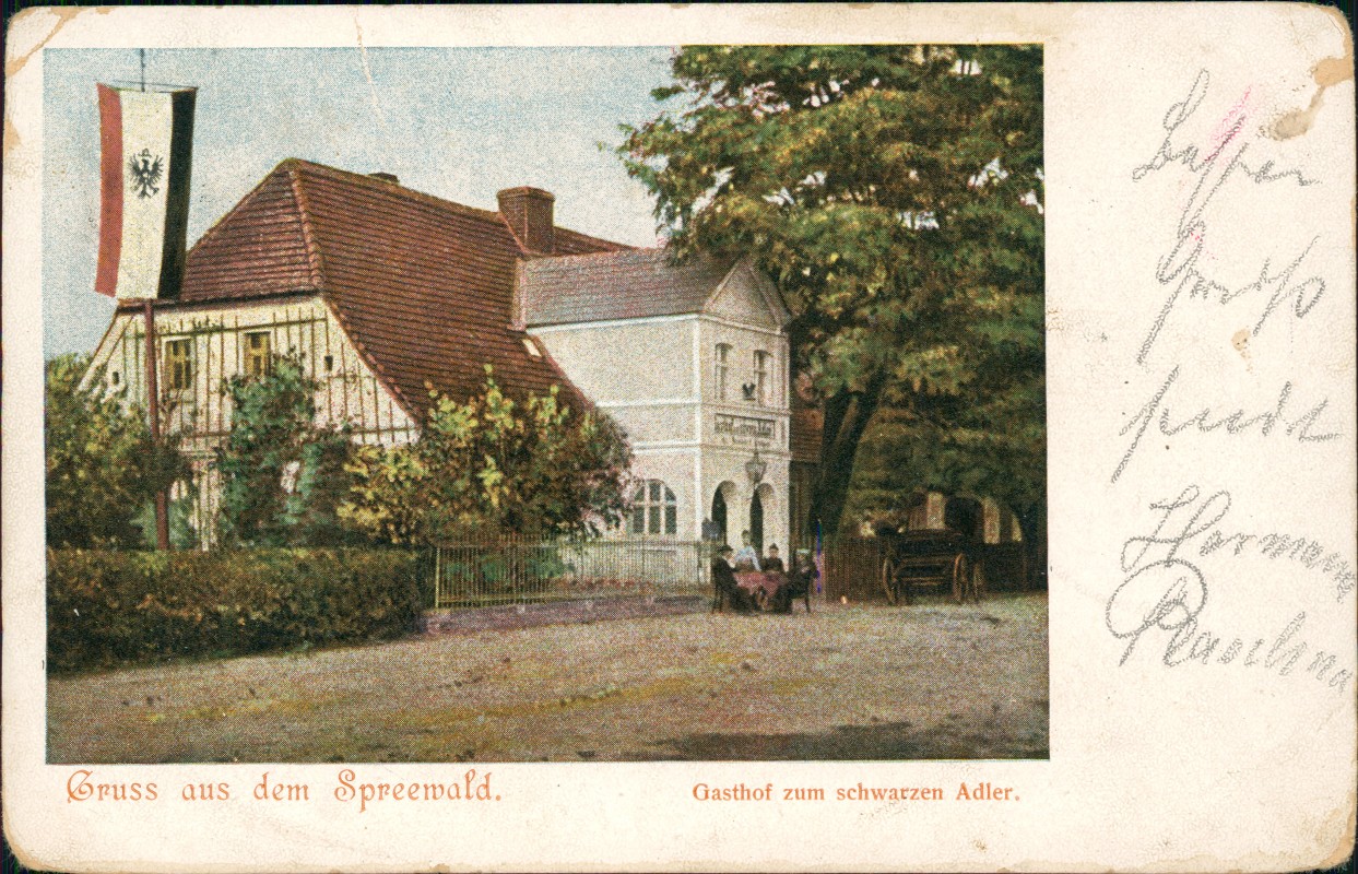 Ansichtskarte: Gasthof zum schwarzen Adler. Patriotika - Burg (Spreewald)