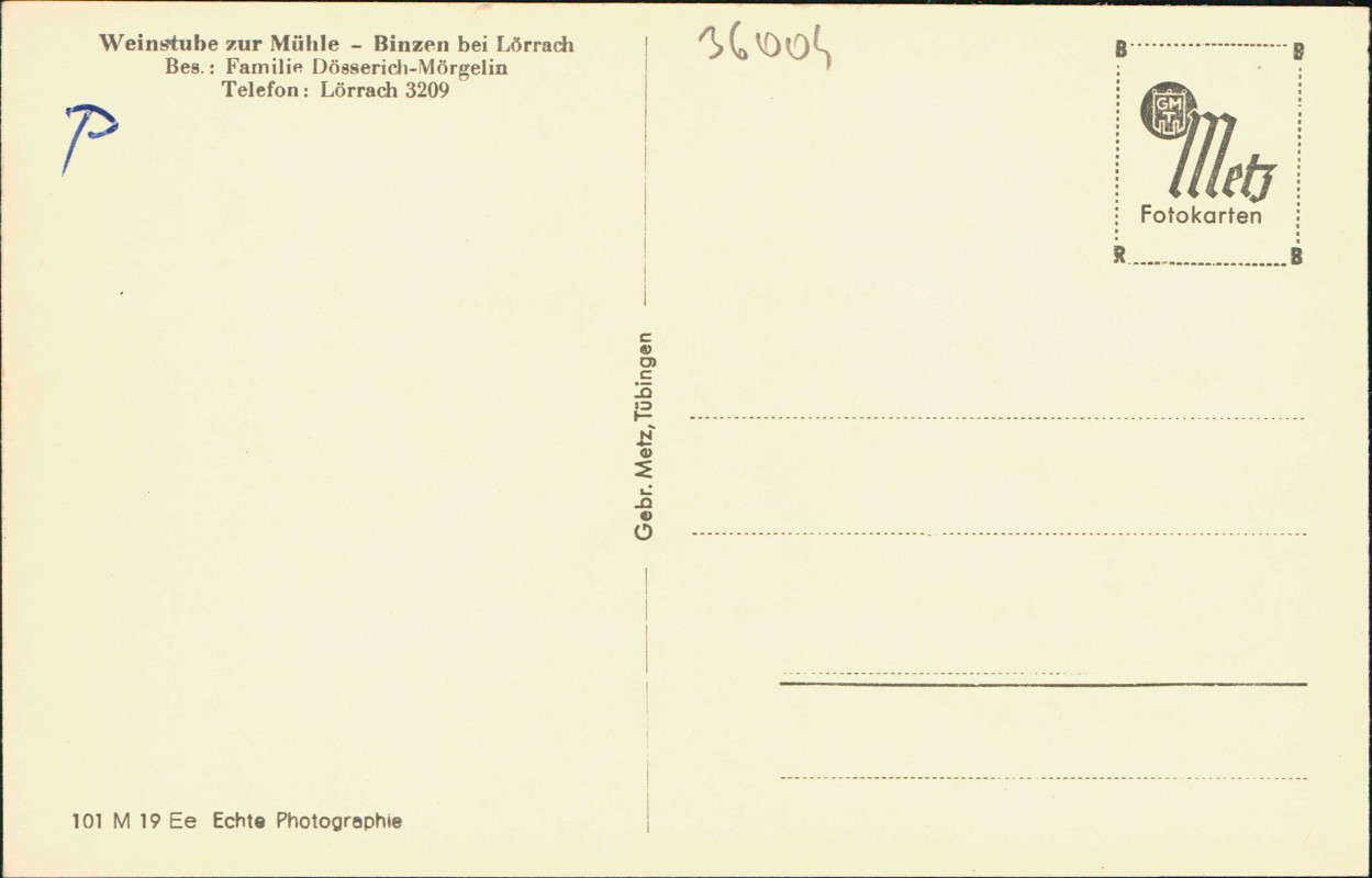 Ansichtskarte: Weinstube zur Mühle - Gastraum - Binzen (Lk Lörrach)