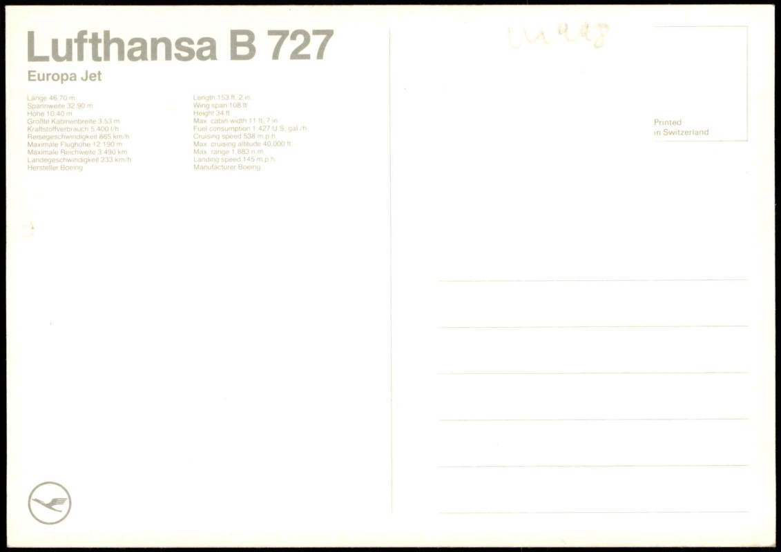 Ansichtskarte: Flugzeug Airplane Avion Lufthansa Boeing 727 Europa Jet