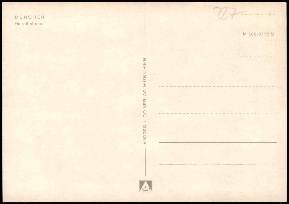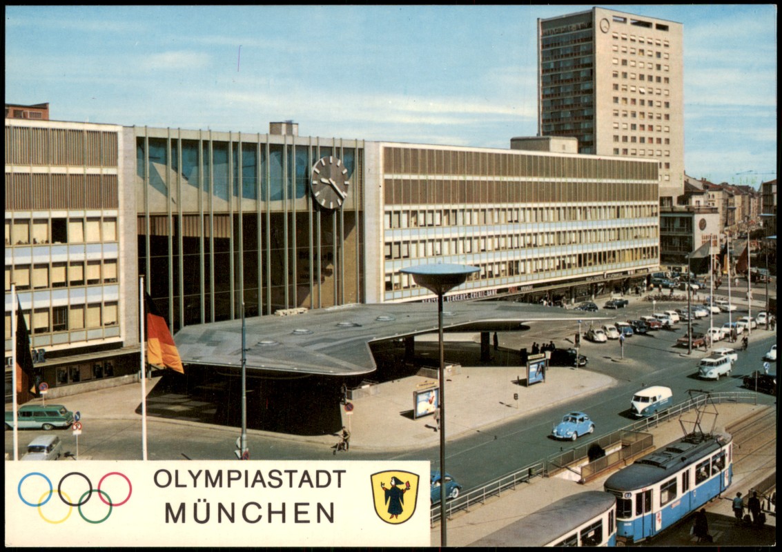 Foto Karte: Hauptbahnhof, Vorplatz mit Autos VW Käfer, Tram Straßenbahn - München