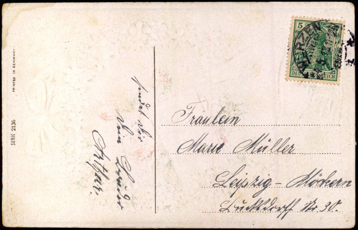 Ansichtskarte: Glückwunsch Geburtstag Birthday Taube Hufeisen aus Veilchen