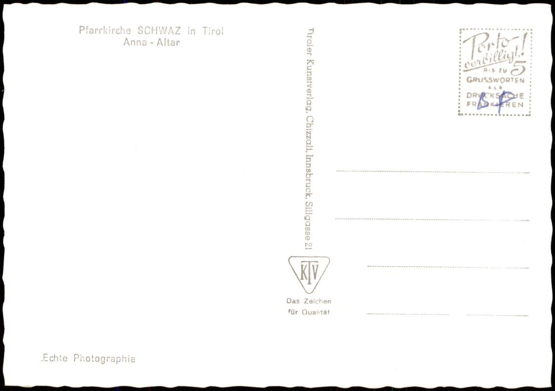 Foto Karte: Pfarrkirche SCHWAZ in Tirol Anna Altar - Schwaz