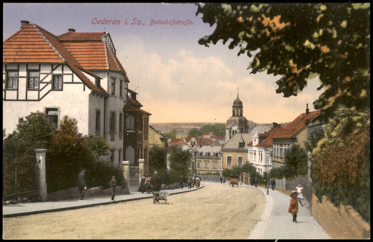 Ansichtskarte: Bahnhofstraße, belebt - Sachsen - Oederan