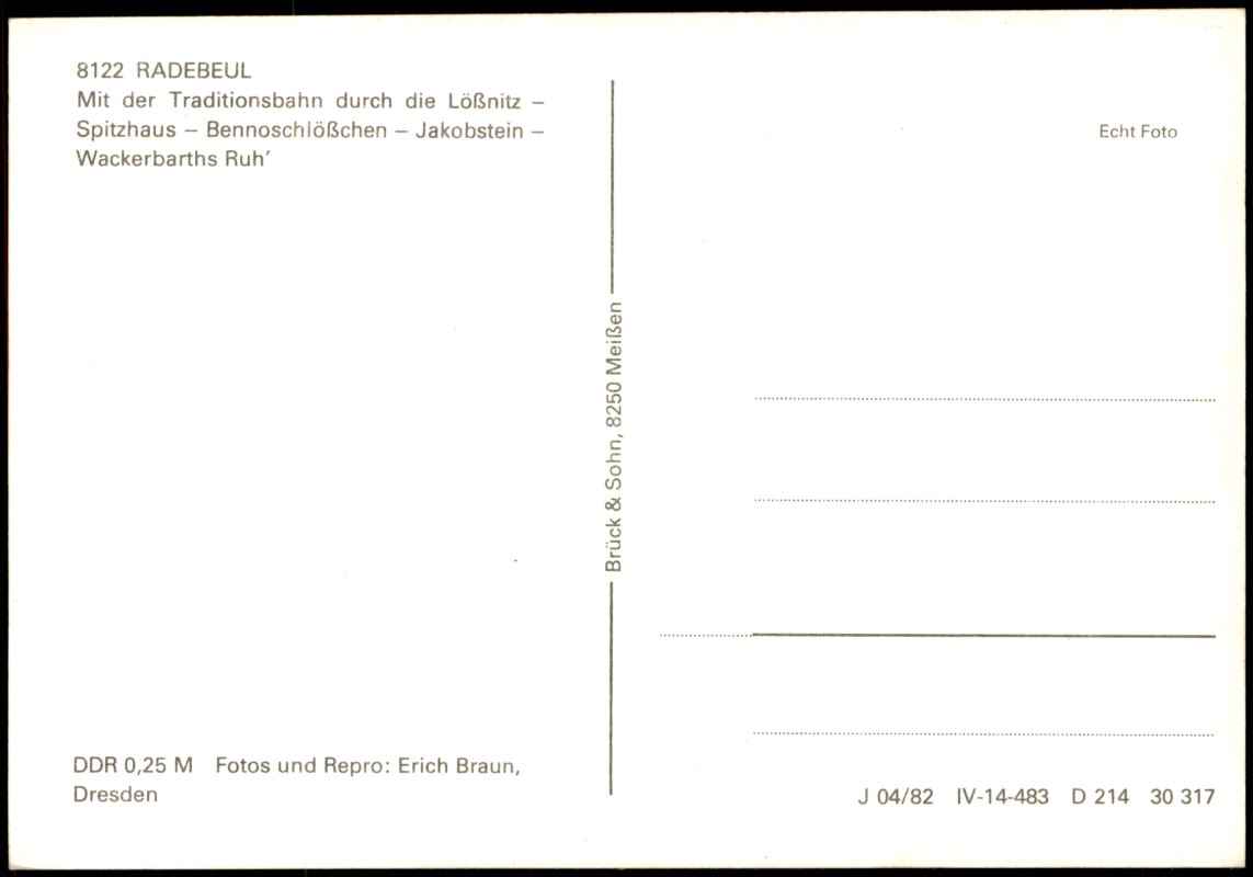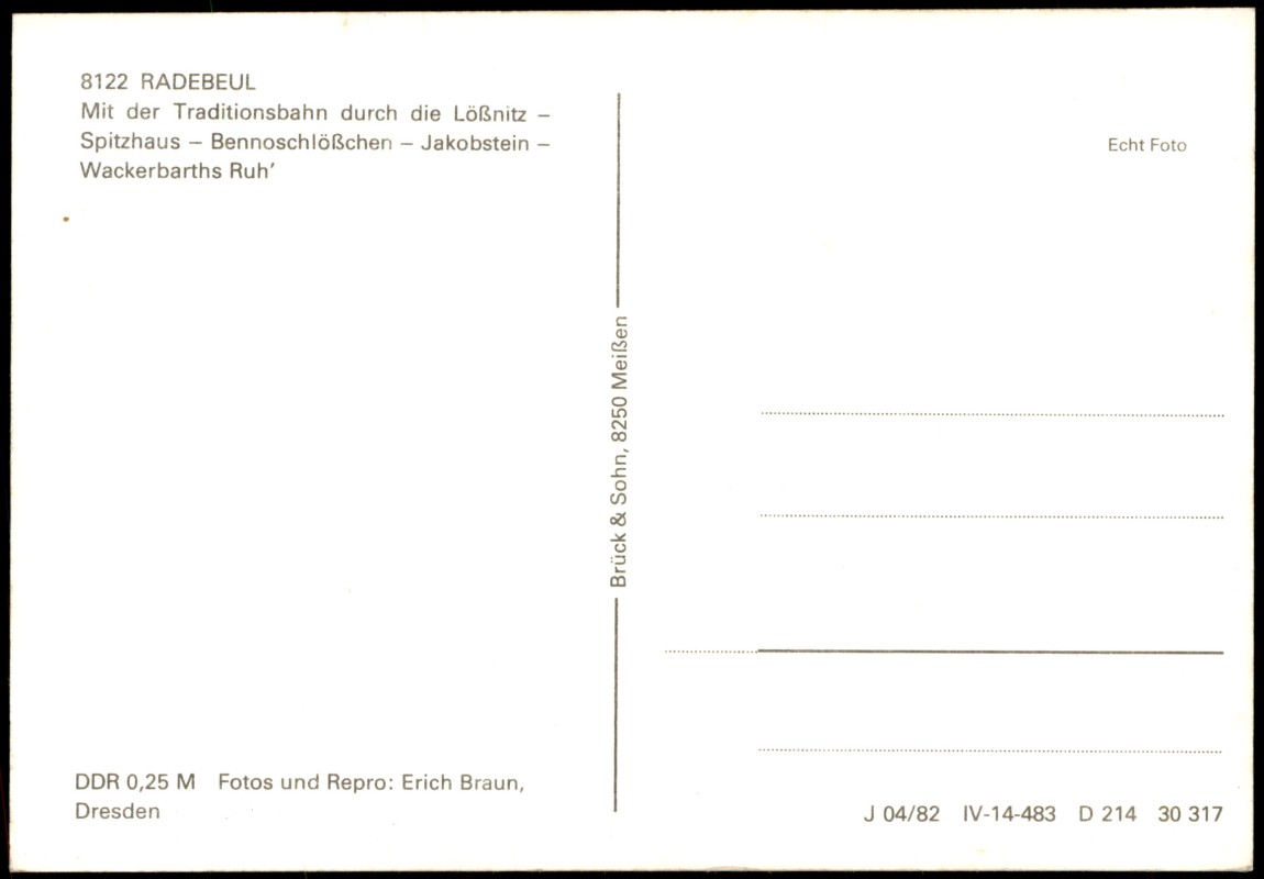 Foto Karte: DDR Mehrbildkarte mit der Traditionsbahn durch die Lößnitz - Radebeul