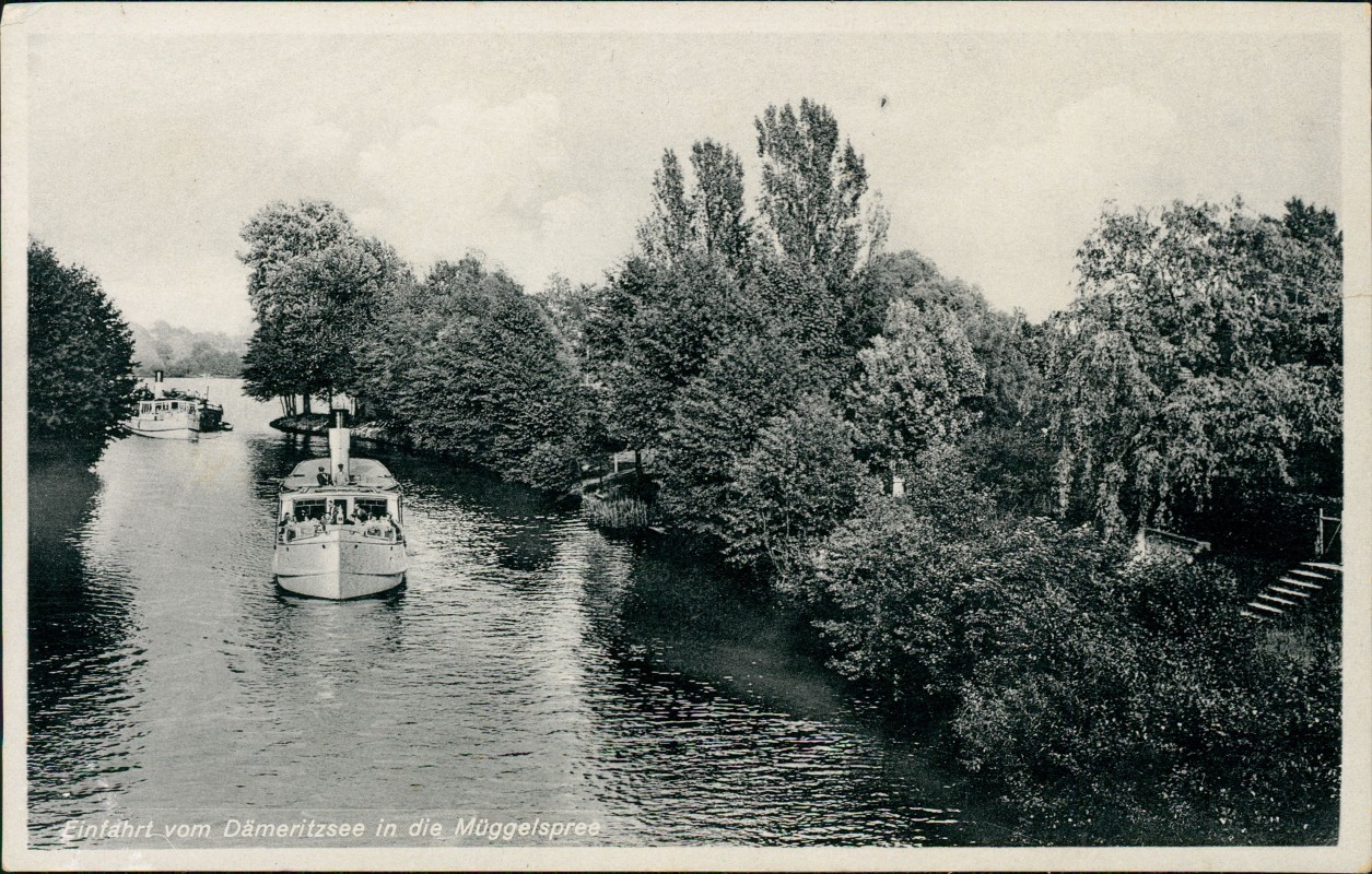 Ansichtskarte: Einfahrt vom Dämeritzsee in die Müggels Hessenwinkel - Rahnsdorf-Berlin