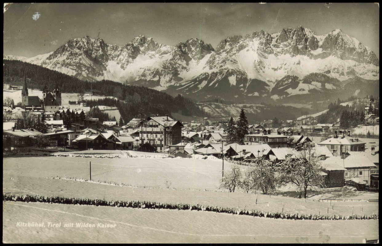 historische Ansichtskarte von 1961: Stadtpartie Winter:: Kitzbühel Adressseite