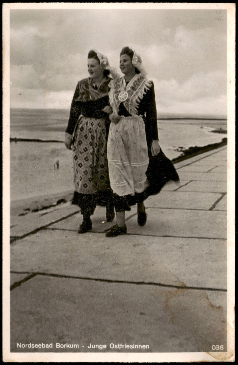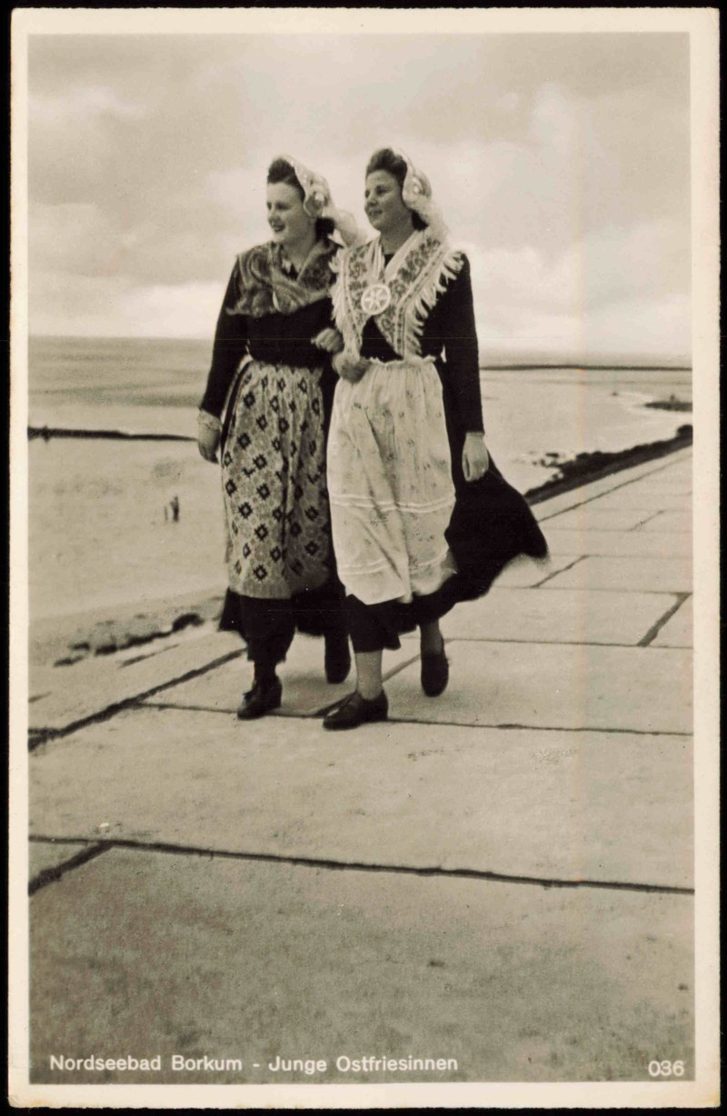 Ansichtskarte: Junge Ostfriesinnen an der Promenade - Borkum
