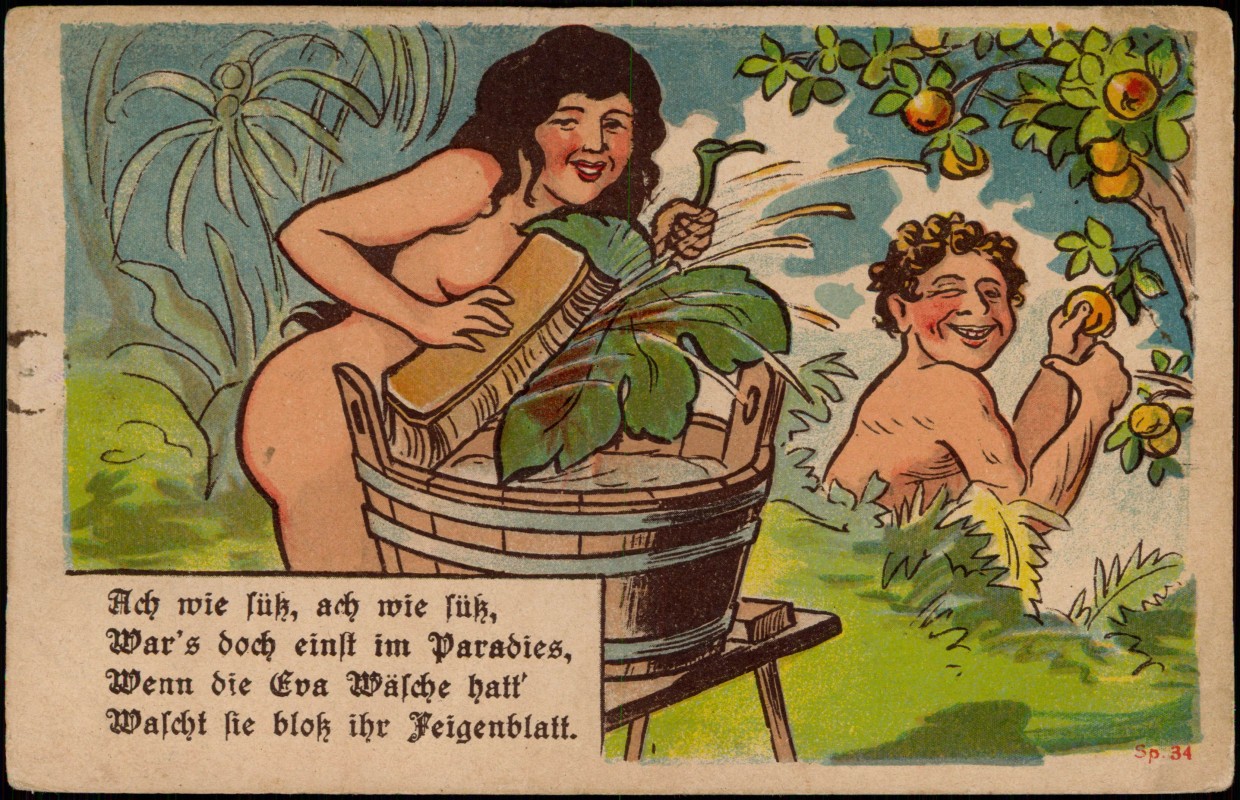 Ansichtskarte: Scherzkarte Adam und Eva im Paradies