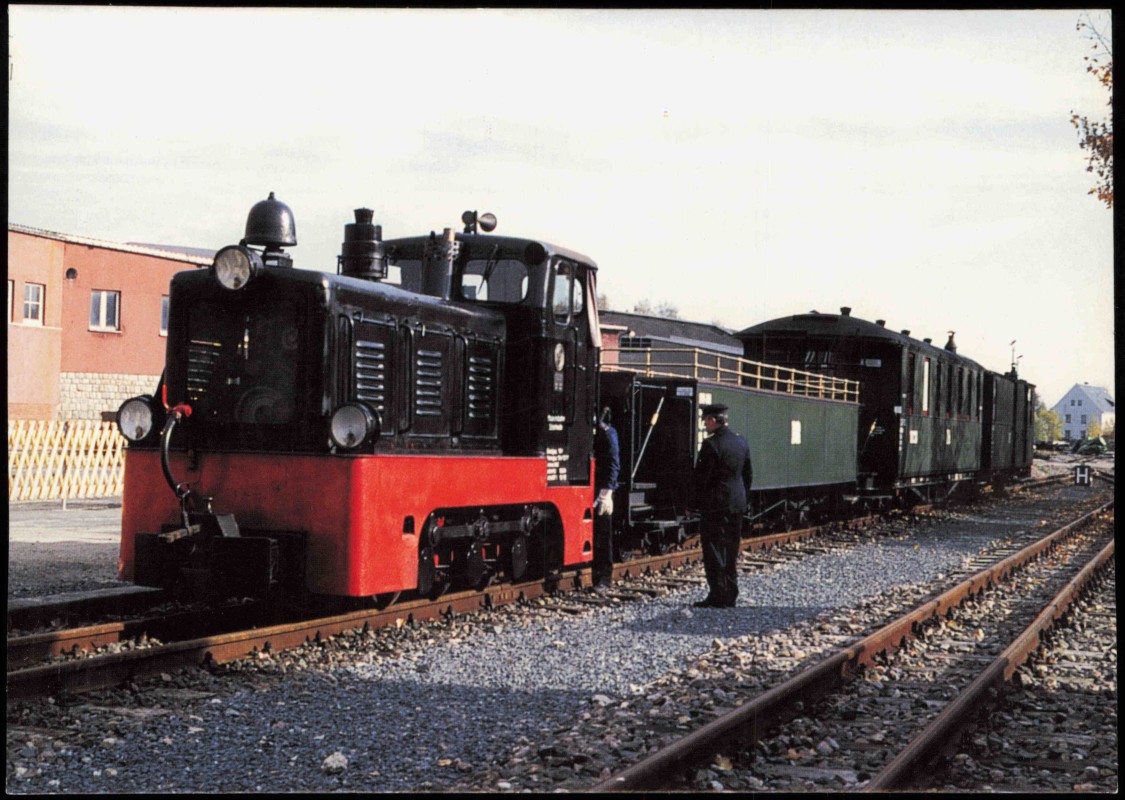 - Dampflokomotive Schmalspurdiesellok mit Museumszug in Stützengrün Haltepunkt