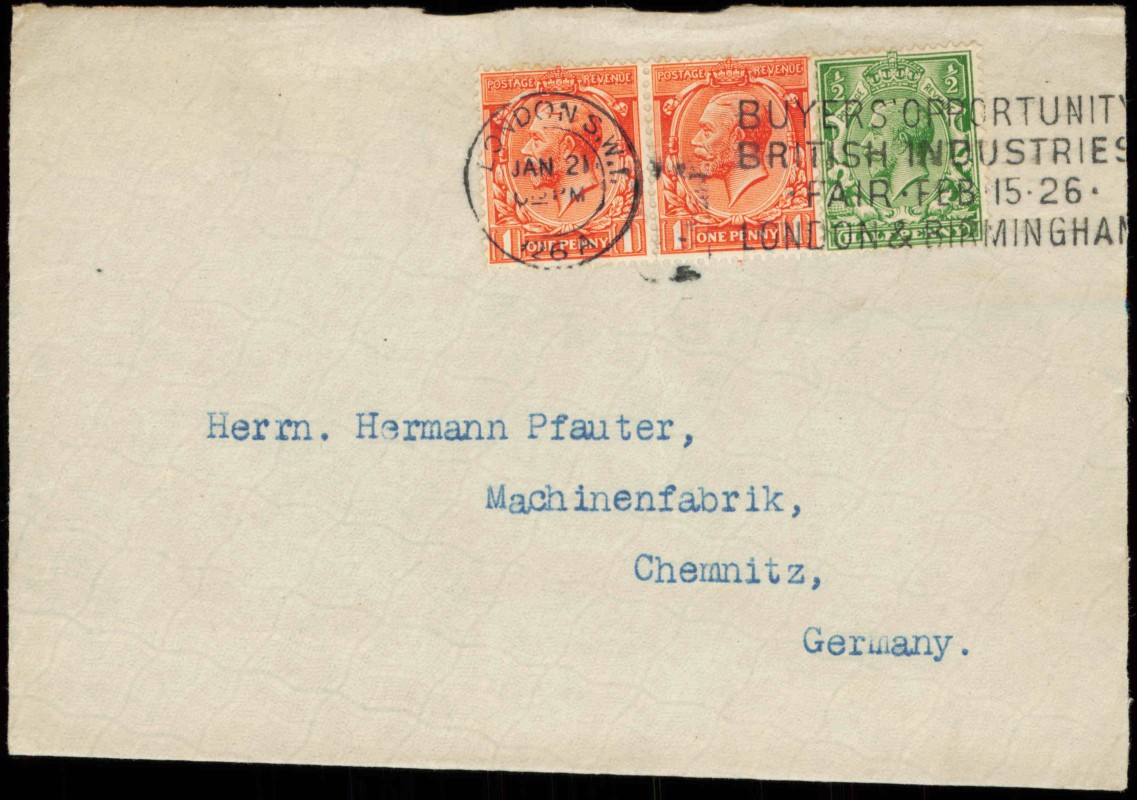 - Briefmarken rote one-Penny und half Penny König George V Stempel London - Buyers opportunity Britisch Industries Fair