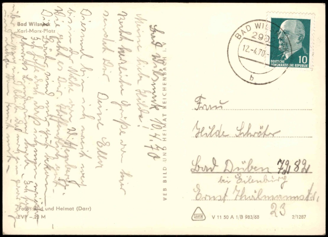 Foto Karte: Straßen Partie Karl-Marx-Platz zur DDR-Zeit - Bad Wilsnack