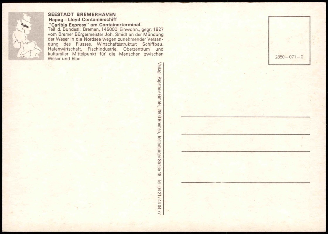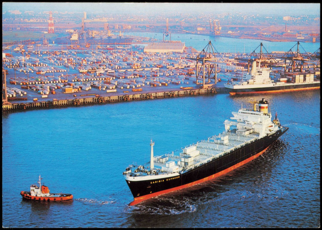 Ansichtskarte: Luftbild Containerschiff Caribia Express - Bremerhaven