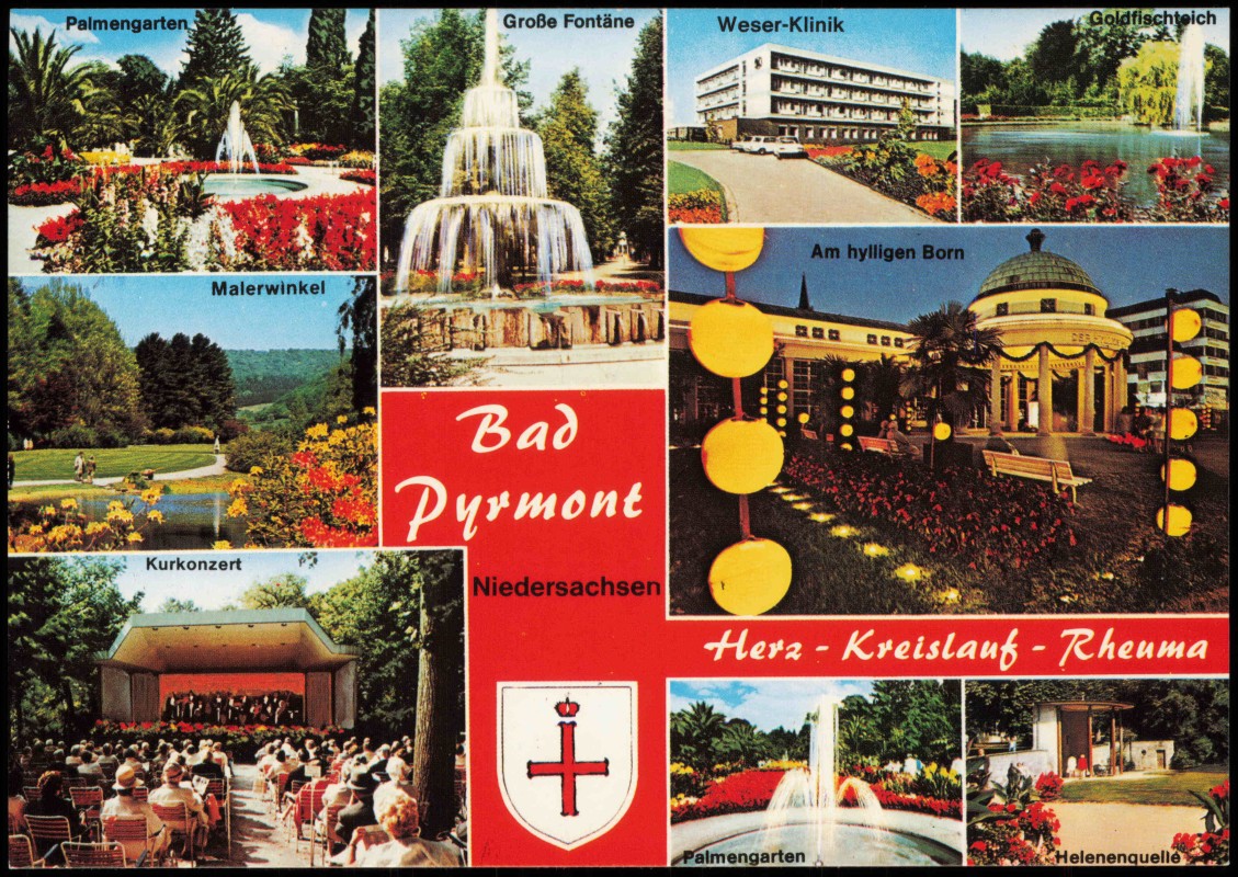 Foto Karte: Mehrbildkarte u.a. Palmengarten Große Fontäne Weser-Klinik Goldfischteich - Bad Pyrmont