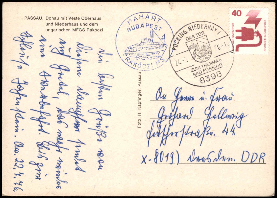 Ansichtskarte: MFGS Rákóczi Donauschiff Ungarn - Passau
