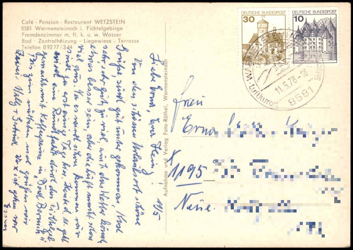 Ansichtskarte: Café Pension Restaurant WETZSTEIN 3 Bild - Warmensteinach