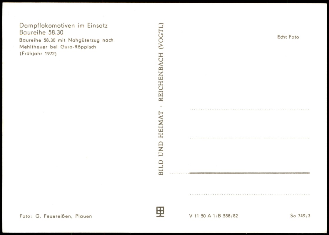 Ansichtskarte: Dampflokomotive Baureihe 58.30 Nahgüterzug - Röppisch-Gera