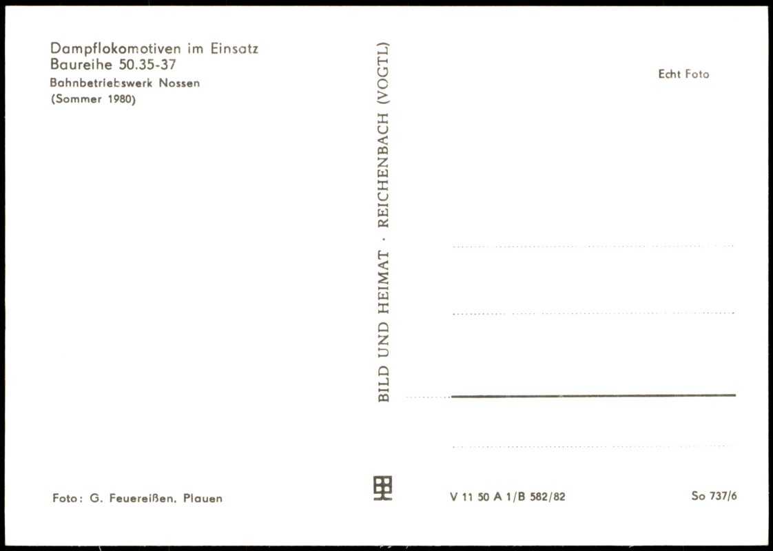 Ansichtskarte: Dampflokomotive Baureihe 50.35-37 Bahnbetriebswerk - Nossen