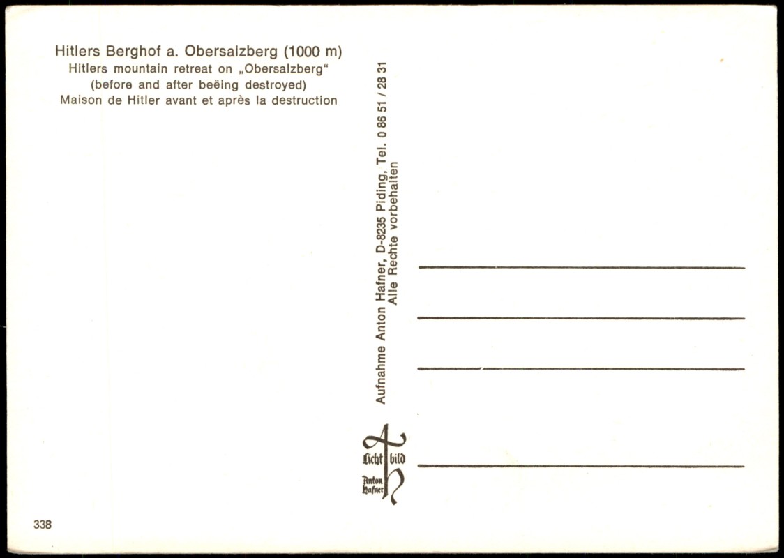 diese Karte können Sie hier kaufen:- Obersalzberg-Berchtesgaden Hitlers Berghof a. Obersalzberg (Mehrbildkarte) 1960