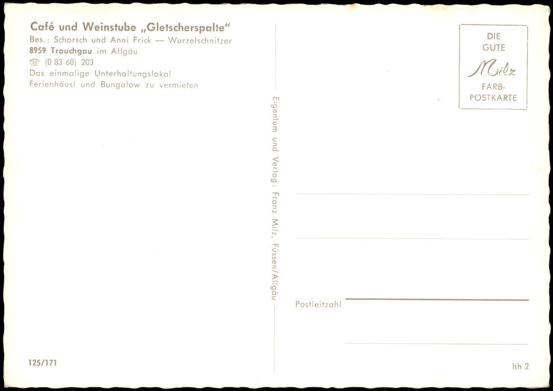 Ansichtskarte: Gaststube Cafe und Weinstube Gletscherspalte - Trauchgau-Halblech