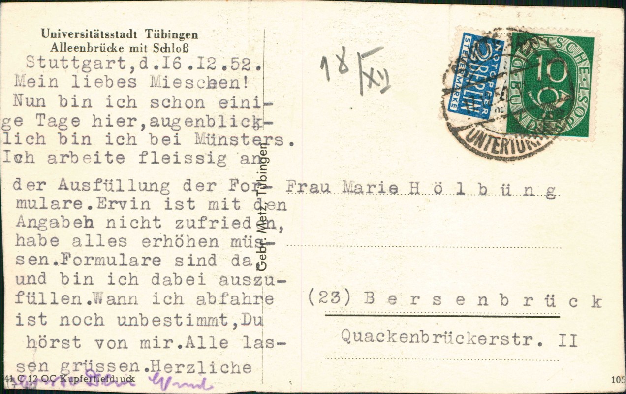 Ansichtskarte: Alleenbrücke mit Schloß Ruderer - Tübingen