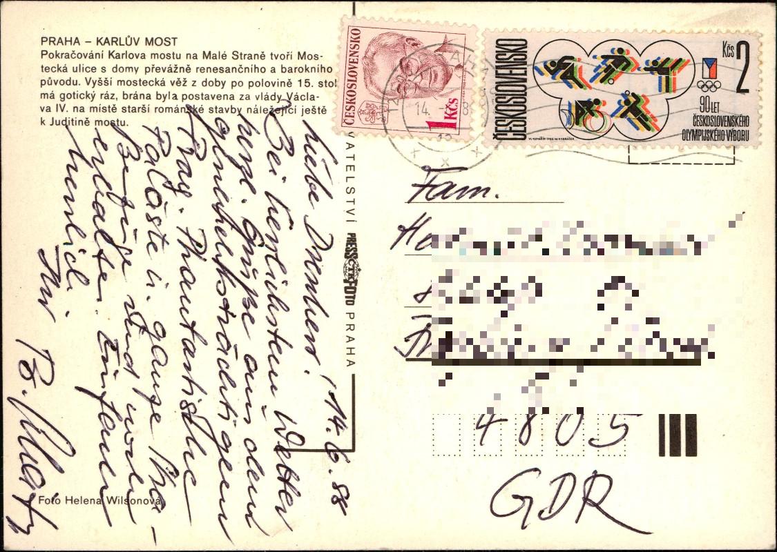 Ansichtskarte: Karlsbrücke mit Kleinseitner Brückenturm und Mostecká-Gasse - Prag