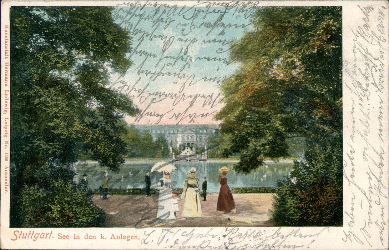 Ansichtskarte: See in den k. Anlagen. - Stuttgart