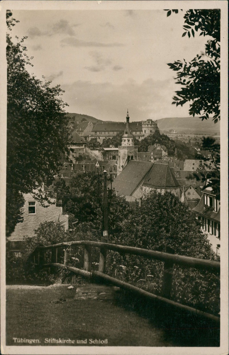 Ansichtskarte: Blick vom Weg auf Stiftskirche und Schloß - Stuttgart