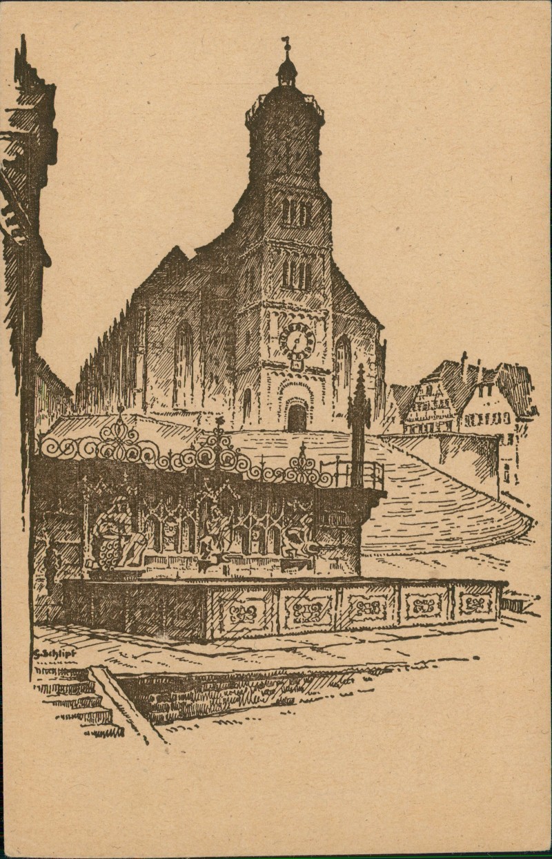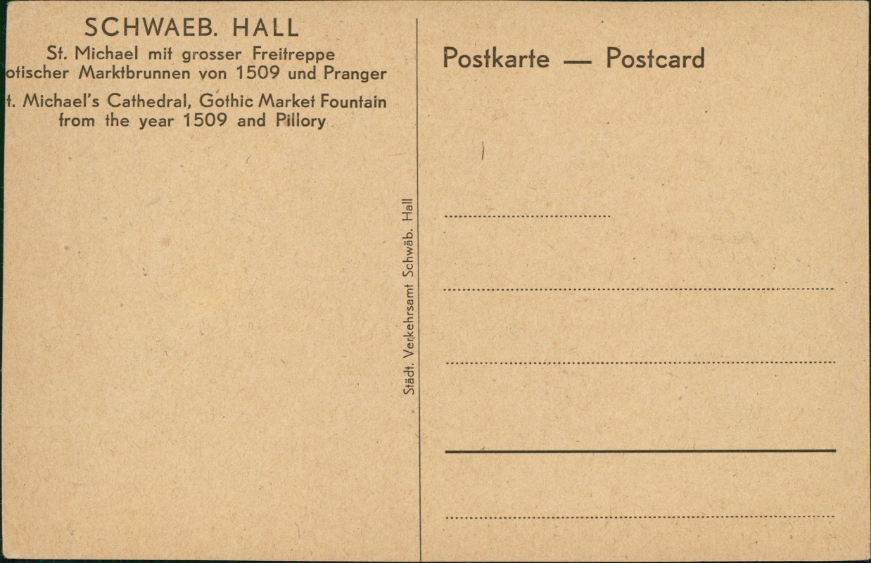 Ansichtskarte: Künstlerkarte Federzeichnung Freitreppe Kirche - Schwäbisch Hall