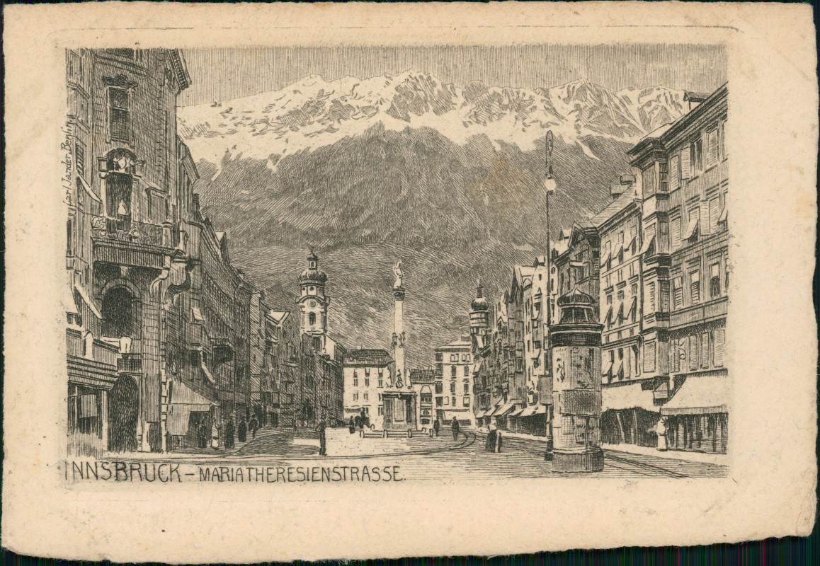 Ansichtskarte: Maria Theresienstraße Federzeichnung - Innsbruck