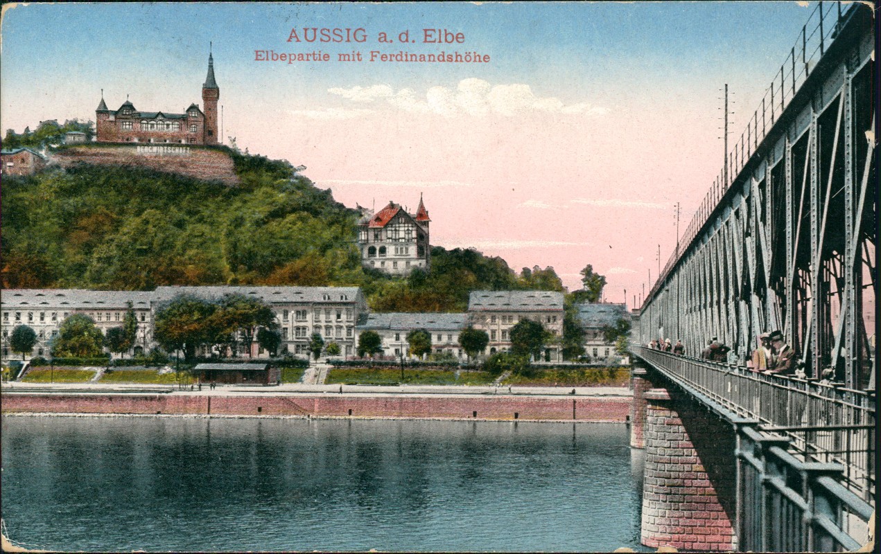 Ansichtskarte: Brücke mit Ferdinandshöhe - Aussig