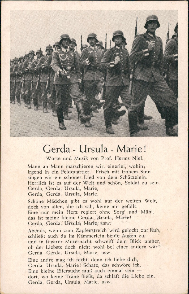 Ansichtskarte: Liedkarte Militär WK2 Gerda Ursula Marie! marschierende Soldaten