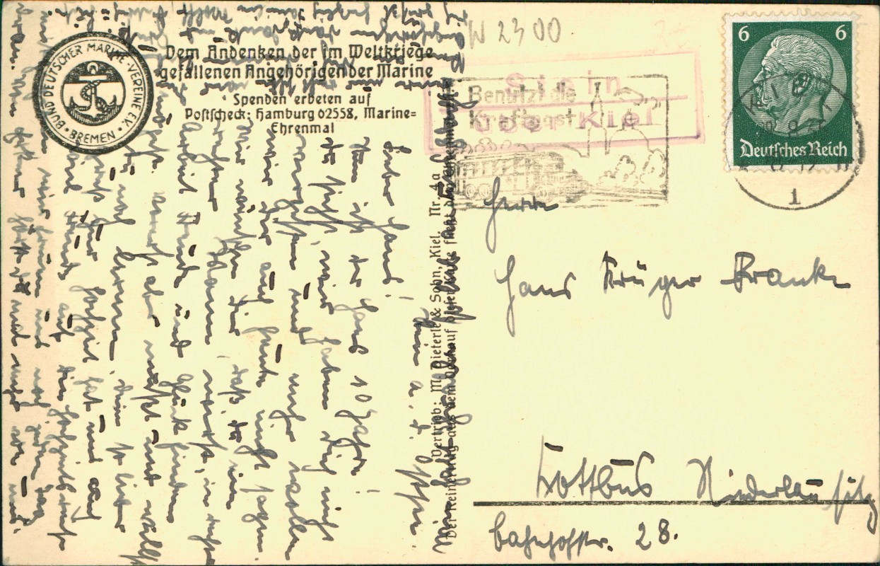 Ansichtskarte: Marinedenkmal vom Meer gesehen - Fotokarte - Laboe