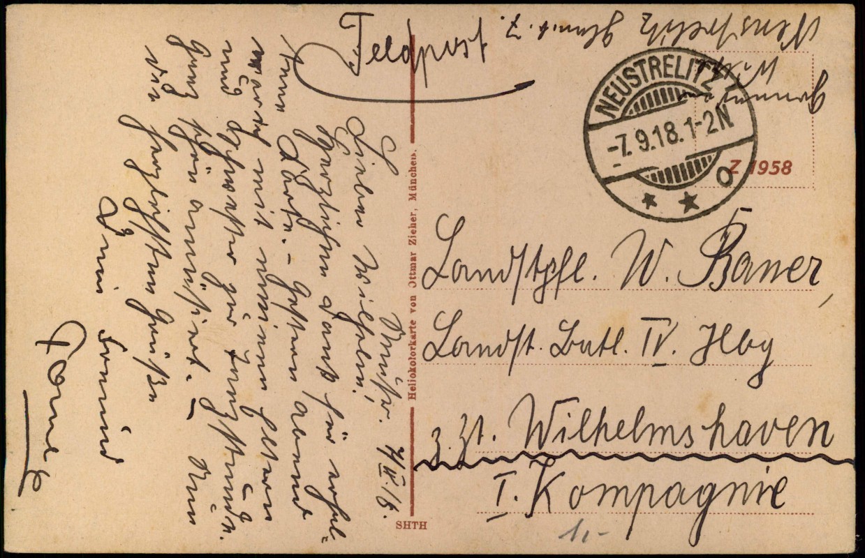 historische Ansichtskarte von 1918: Partie im Schloßgarten:: Neustrelitz Adressseite