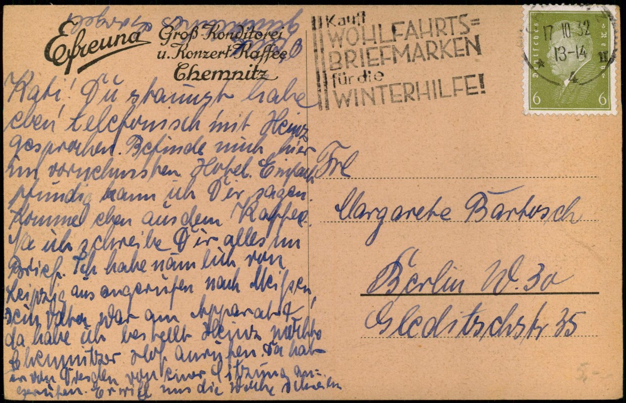 Ansichtskarte: Efreuna Konditorei Konzert-Kaffee Saal - Chemnitz