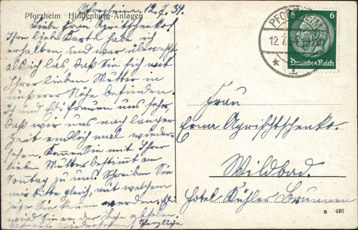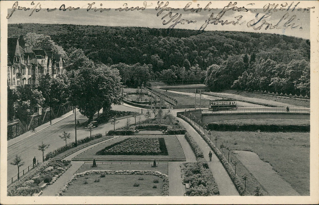 Ansichtskarte: Hindenburg-Anlagen, Straßenbahn - Pforzheim