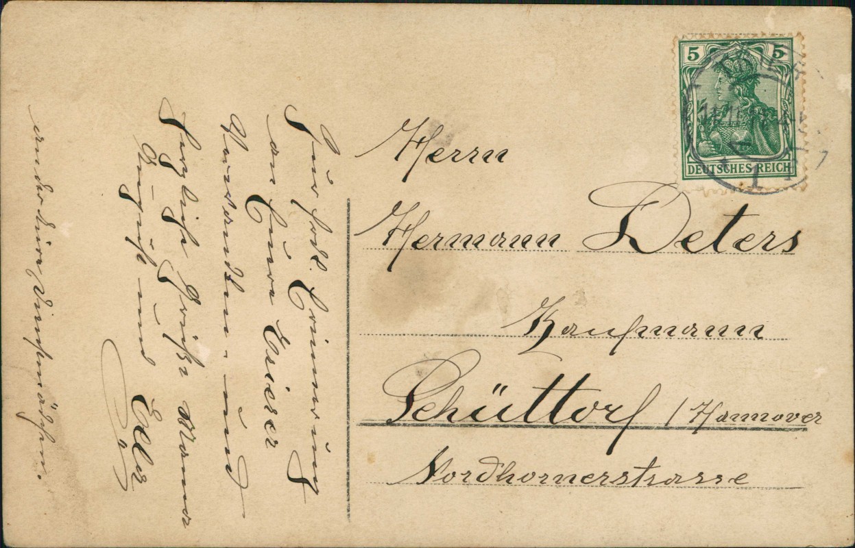 Ansichtskarte: Frau Kinder Soldat Hausfassade