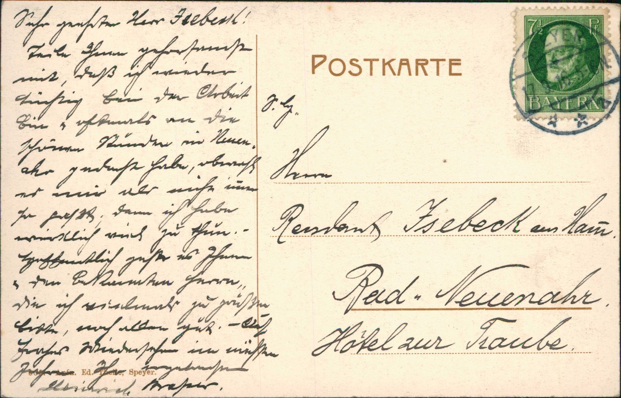 Ansichtskarte: Pfälzisches Tapeten- u. Linoleum-Versandtgeschäft Straße - Speyer