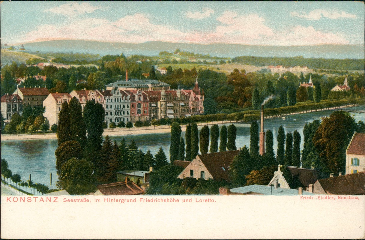Ansichtskarte: Seestraße, im Hintergrund Friedrichshöhe und Loretto. - Konstanz