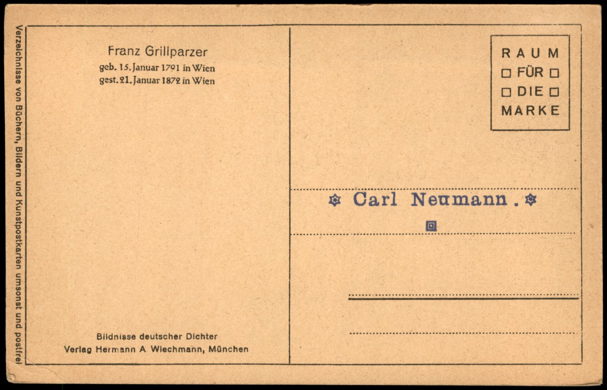 - Künstlerkarte Franz Grillparzer nach Lithographie von J. Kriehuber