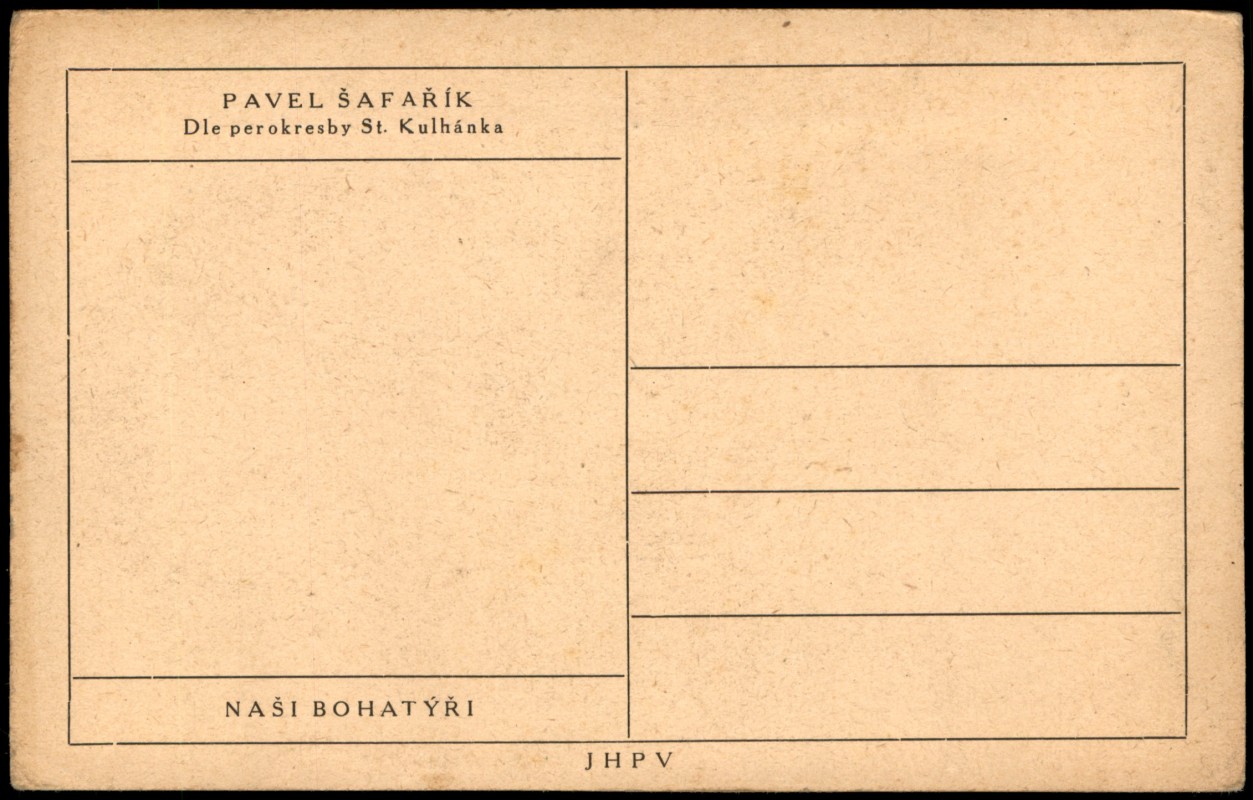 - Künstlerkarte PAVEL ŠAFAŘÍK Dle perokresby St. Kulhánka NAŠI BOHATÝŘI