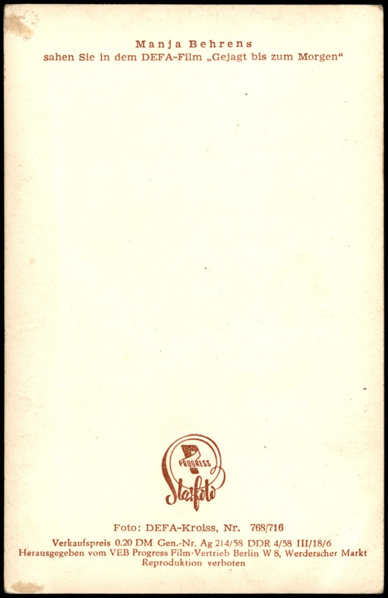 Foto Karte: DDR PROGRESS Starfoto Manja Behrens in DEFA-Film