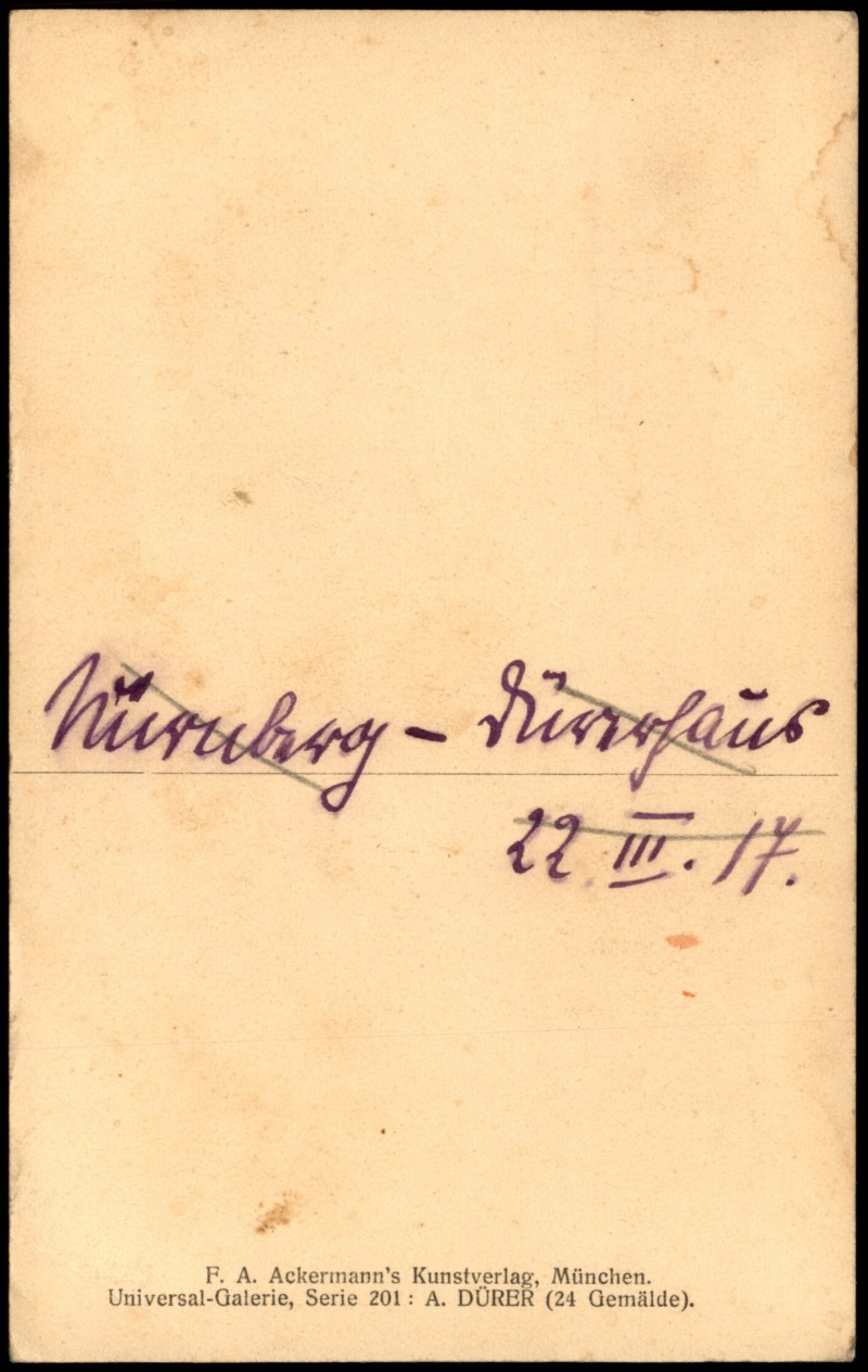 Ansichtskarte: A. DÜRER Jacob Muffel 1526. Künstlerkarte Gemälde Kunstwerke