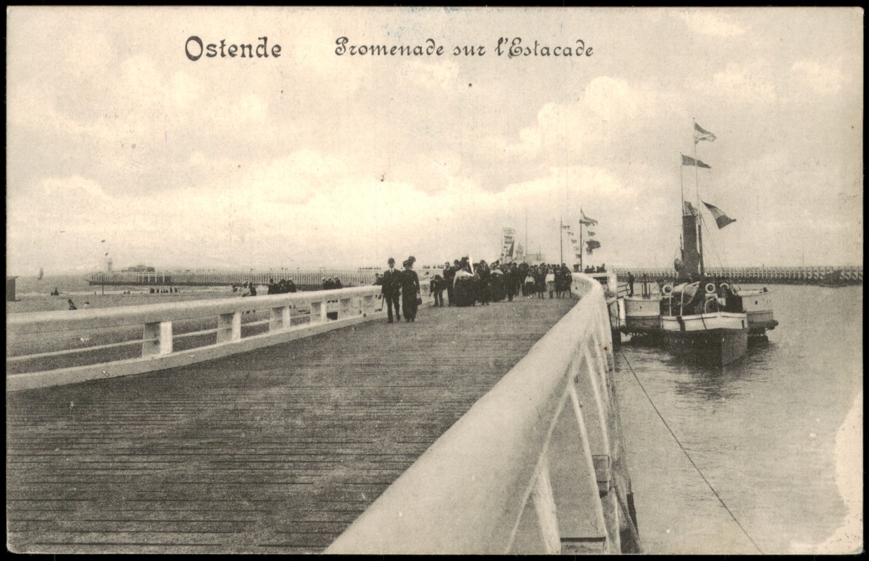 Ansichtskarte: Promenade sur l'Estacade - Dampfer - Ostende